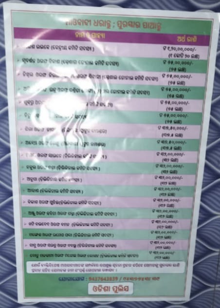 ମାଓବାଦୀଙ୍କୁ ଧରାନ୍ତୁ ପୁରସ୍କାର ପାଆନ୍ତୁ