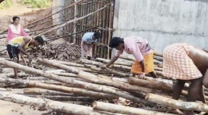 ଶାଳଗଛ କାଟି ପୋଲନିର୍ମାଣ କାର୍ଯ୍ୟରେ ନିୟୋଜିତ: